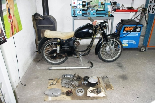 .A többi része egyben van, bár egy pár apróság hiányzik. Tanksapka, gyújtáskulcs, hátsó lámpa búra, így hirtelen. A festése nagyjából gyári, de bele van javítgatva ecsettel itt-ott.