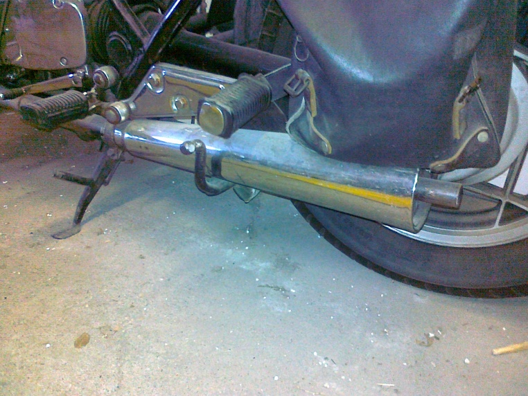 Említettem, hogy kibelezték a kipufogót. Volt egy próbálkozásom a belsejének pótlására, de mivel még kísérleti szakaszban van nem vágtam le a cső végét, hogy legyen mit megfognom ha újra ki kell venni.
