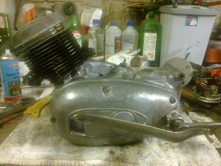 Szép! Az alumíniumok szépítésére (már,ha nem akarod tükör fényesre) én a "scotch bright" (köznyelven dörzsi) anyagot használtam,abban van bordó (durvább) és szürke (finomabb) színű is. Ezekkel teljesen gyári "fényű" lett a blokk és a ráf is.