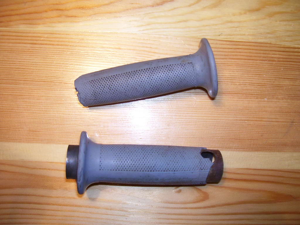 A kialakítása szerintem teljes egészében megegyezik a 49-ével*, csak szürke. A kuplung-oldali gumi belső pereme kicsit vékonyabb, mint a gázszektoré. Szerintem pont olyan, mint a Schwalbe-féle. Ha ebből találnánk két nagyon szép példányt, könnyedén lehetne utángyártani mind a fekete, mind a szürke, eredeti változatot. Hogy megéri-e, érdemes elgondolkodni ApaE véleményén.