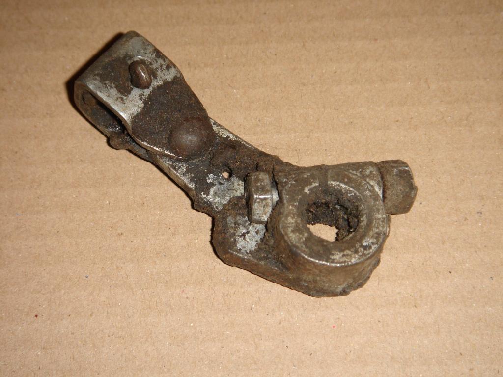 A következő kérdésem lenne. Milyen megoldással volt eredetileg rögzítve a képen mellékelt TLF fékkar a féktengelyre? Az alkatrész-katalógusban csak"csavarként" szerepel. Arra rájöttem, hogy M6-os csavar kell hozzá, de milyen fejkiképzéssel. A probléma az, hogy nem fér el a csavarfej vagy anya a lyuk és a fékkar laposvas teste között. Esetleg volt valamilyen távtartó, ami kiemelte a csavarfejet a laposvasrész fölé? Mikor én leszereltem egy hatlapfejű csavarral volt rögzítve, amelynek a fejének a fele-ami a laposvas fele nézett-le volt köszörülve! Funkcióját betöltötte de kétlem, hogy ez volt a gyári megoldás! Én nem így szeretném feltenni!
