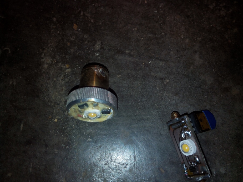 - tesco zseblámpa (azóta nem forgalmazzák) foncsor kitépve, helyére egy foglalatától megszabadított olcsó e-bayes LED égő (spiáter hűtés rajta)