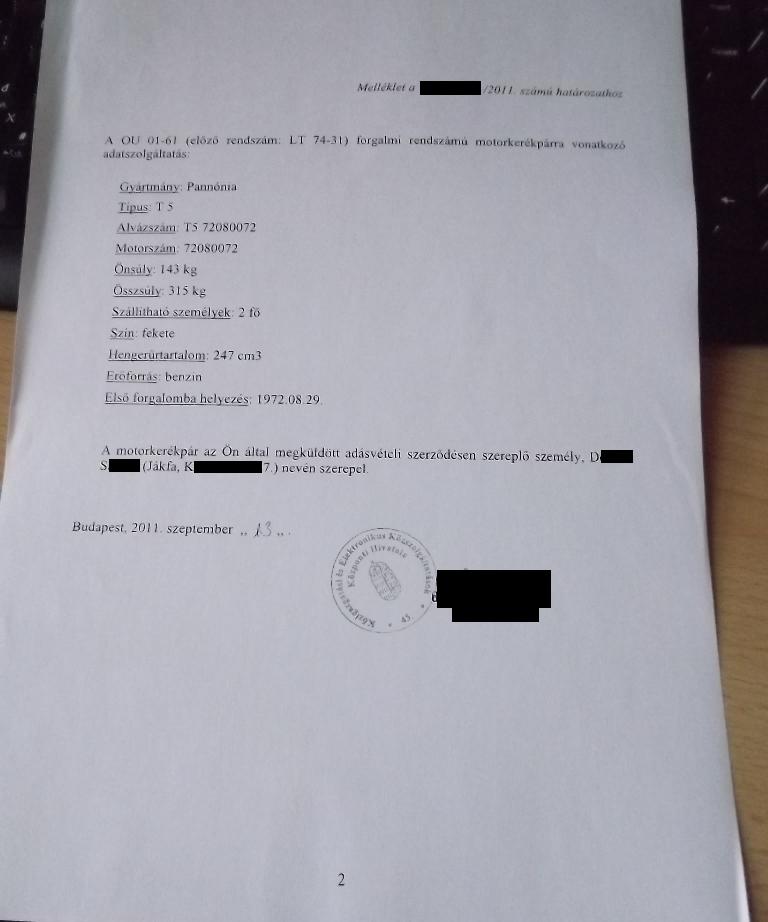 Ez az infó később az okmányirodában került elő. A meghatalmazottam (édesanyám) íratta át, mivel épp nem tudtam a munkahelyemről elszabadulni, viszont telefonon el kellett magyaráznom az ügyintézőnek hogy mi az én álláspontom. Ezt ő készségesen elfogadta, bár érezhetően idegrendszeri többletterhelést jelentett számára a nagy kupac papír és a szokatlan helyzet. De azért megengedte hogy válasszak a készleten lévő rendszámtáblák közül.
